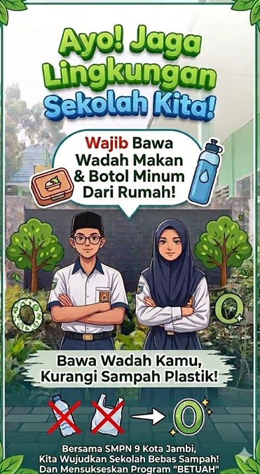 Lingkungan sekolah yang bersih bukan sekadar estetika, melainkan fondasi utama bagi terciptanya ekosistem belajar yang sehat dan kondusif. Menghadapi tantangan klasik berupa tumpukan sampah sisa kantin dan plastik sekali pakai yang berserakan, SMP N 9 Kota Jambi meluncurkan sebuah program inovasi visioner bertajuk BETUAH (Bersih Tertib Upaya Atasi Sampah). Nama "Betuah" sendiri tidak hanya sebuah akronim, tetapi juga mengandung kearifan lokal Jambi yang bermakna keberuntungan atau keutamaan, mencerminkan harapan agar program ini membawa manfaat besar bagi warga sekolah.